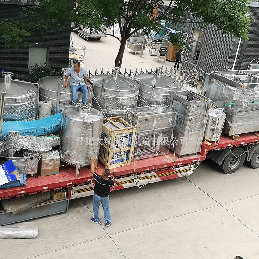 ⑶下曲:将曲子(或糖化剂酵母)用温水泡透激活并倒入发酵容器中拌匀保温发酵,温度一般控制在32-38℃之间,尽量不超过36℃,因为温度过低过高酒的品质不好。每隔4小时搅拌1次,两天后,每12小时搅动